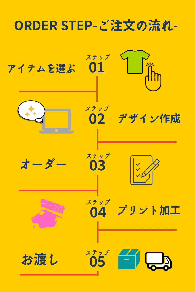 お客様のデザインをTシャツなどのアイテムへ1枚からプリントいたします。